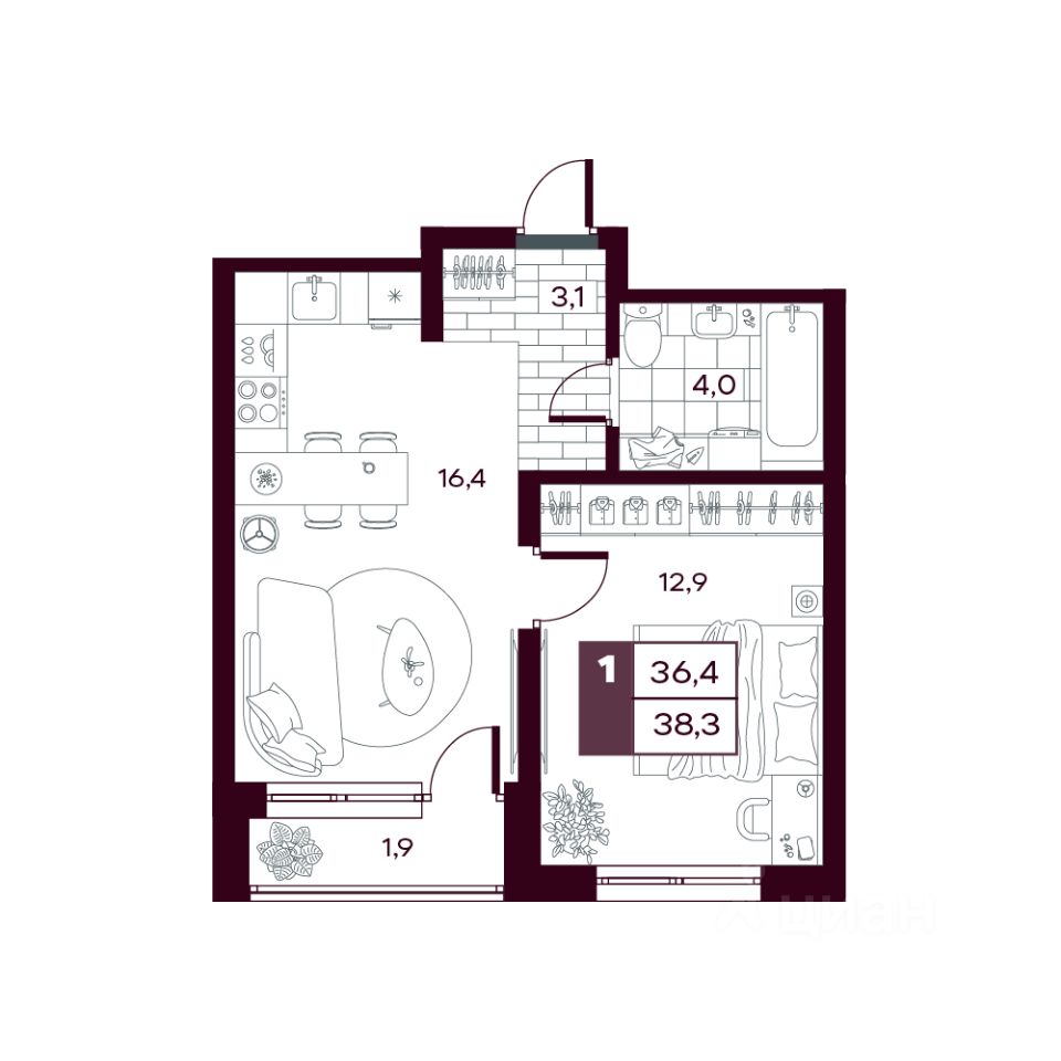 продам 1-к, Сергея Джанбровского, 21 корп. 36 702 735 ₽