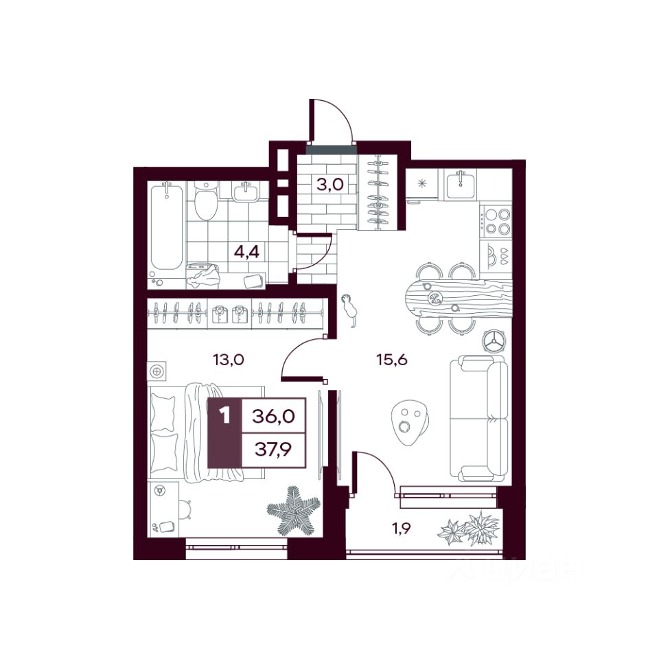 продам 1-к, Сергея Джанбровского, 21 корп. 36 352 535 ₽