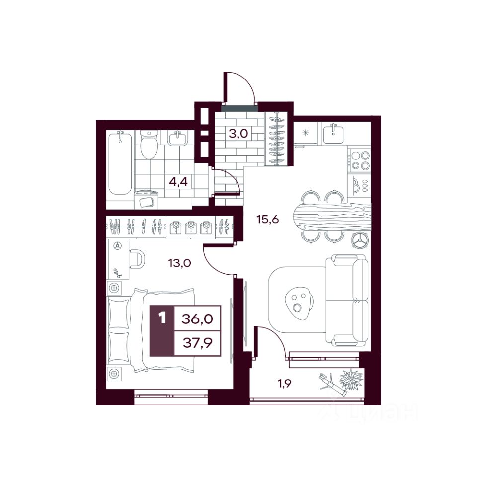 продам 1-к, Сергея Джанбровского, 21 корп. 36 640 935 ₽