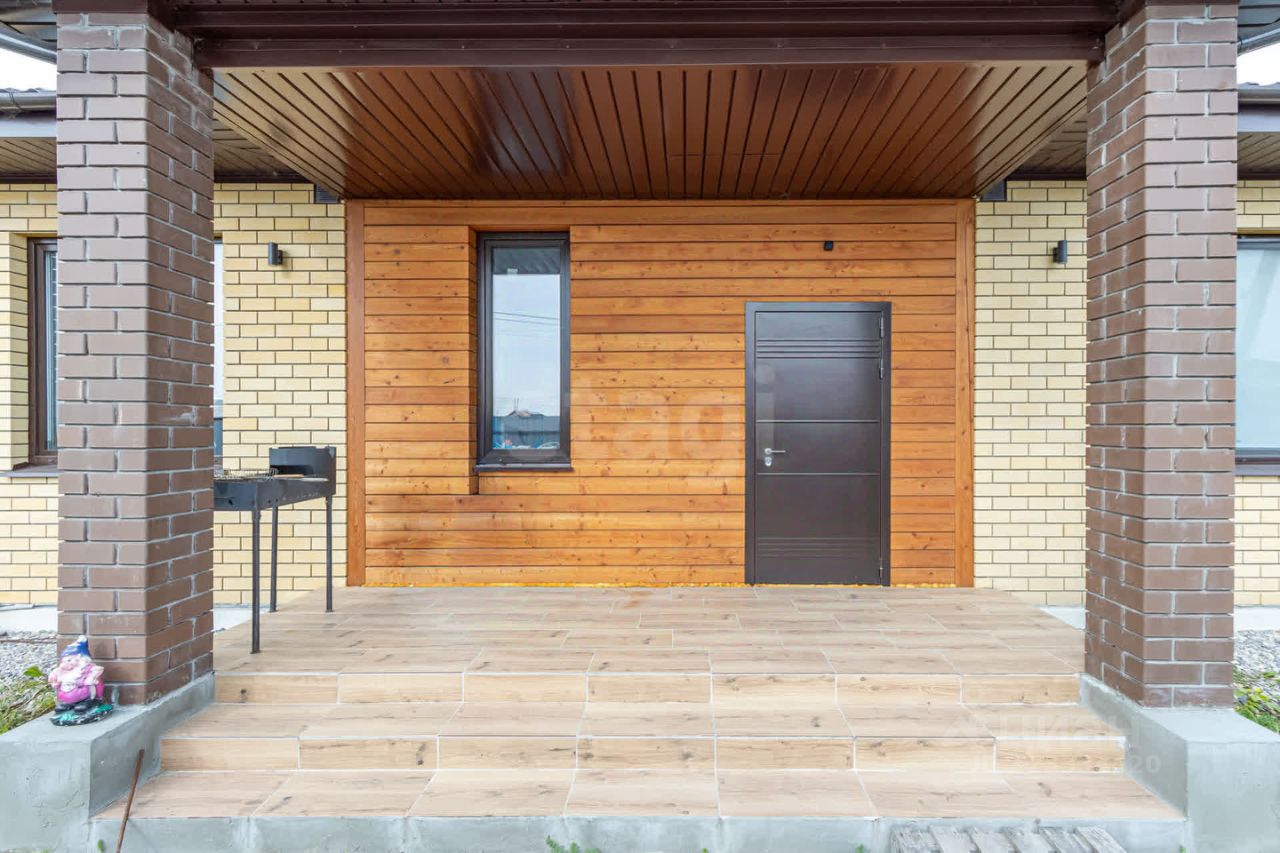 О доме: Дом выполнен из керамзитобетонных блоков 300мм. облицовка кирпич, утеплитель пенопалистерол 500мм. Дом построен ленточном фундаменте с буронабивными сваями, плитой перекрытия. Площадь дома 111.2 м2 имеется три комнаты, кухня гостиная 30 м2, санузел, бойлерная.Дом продаётся с современным ремонтом, на полу керамогранит, стены обой, потолки натяжные с точечными светильниками и закладными под текстиль.