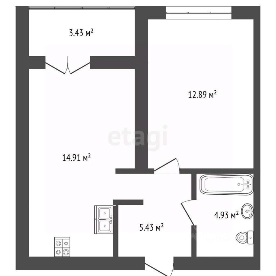 Планировка с нишей под шкаф купе.Санузел совмещен.