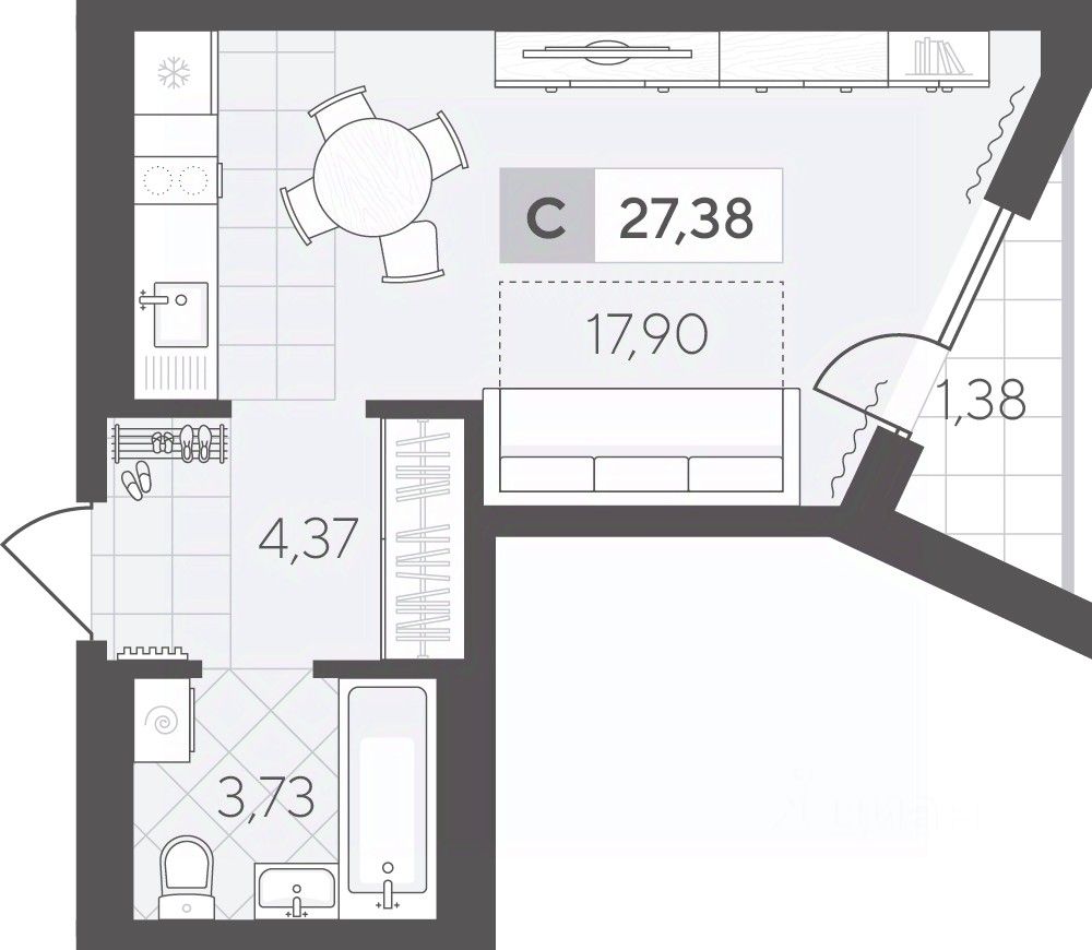 Студия площадью 27.38 кв.м на 8 этаже — уютное пространство, которое легко адаптировать под любые сценарии проживания. Продуманное расположение зон создаёт комфорт для жизни и отдыха.