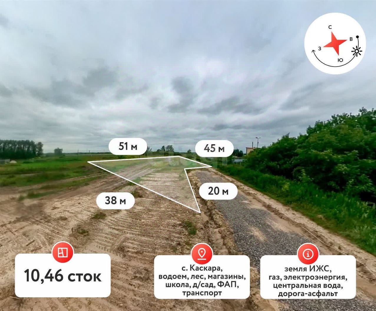 Представляем Вашему вниманию великолепный земельный участок площадью 10,46 соток, расположенный в живописном уголке Каскара. Этот участок идеально подходит для тех, кто мечтает о собственном доме вдали от городской суеты. Преимущества участка: - Коммуникации: Газ и центральное водоснабжение уже подведены к участку, что значительно упрощает процесс строительства. Электрический столб расположен рядом, обеспечивая легкий доступ к электросети. - Дорога: Отличная транспортная доступность благодаря качественной щебеночной дороге, которая вскоре будет заасфальтирована. Подъездные пути удобные и широкие, позволяя без труда добраться до участка даже в плохую погоду. Экология: Участок находится в экологически чистой зоне, окруженной природой и свежим воздухом.