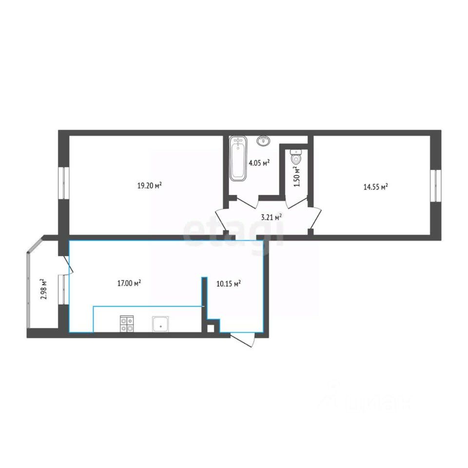 ОБЪЕКТ: двухкомнатная квартира площадью 67 кв.м., кухня-гостиная - 17 кв.м. на 10 этаже 14-этажного дома