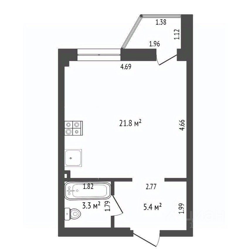 Площадь — 30,5 кв.м