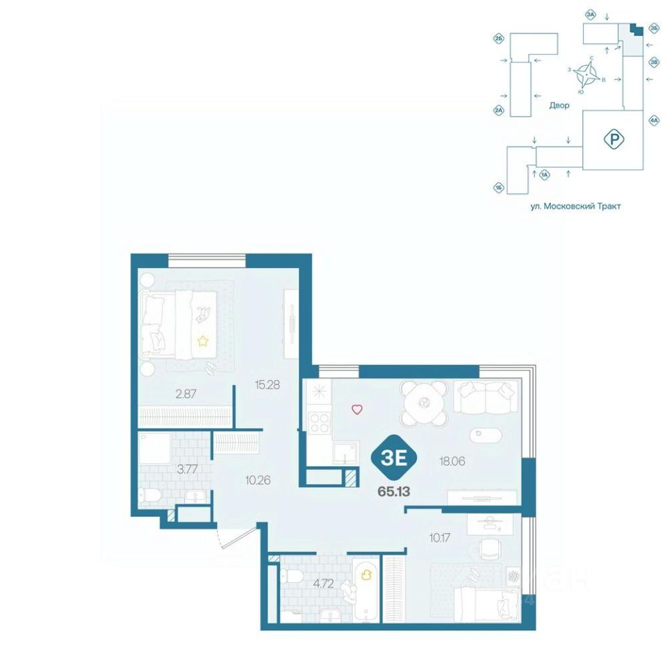 продам 3-к, Московский тракт, 17146 899 200 ₽