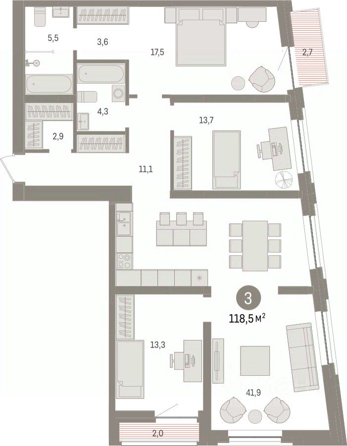 Продаётся с паркингом. Квартира с кухней-гостиной и тремя спальнями в жилом районе ''Речной порт''. Особенности планировки: балкон, предчистовая отделка, разнесённые спальни. квартиры в нашей базе: РПТ04-Ж3.7.2.