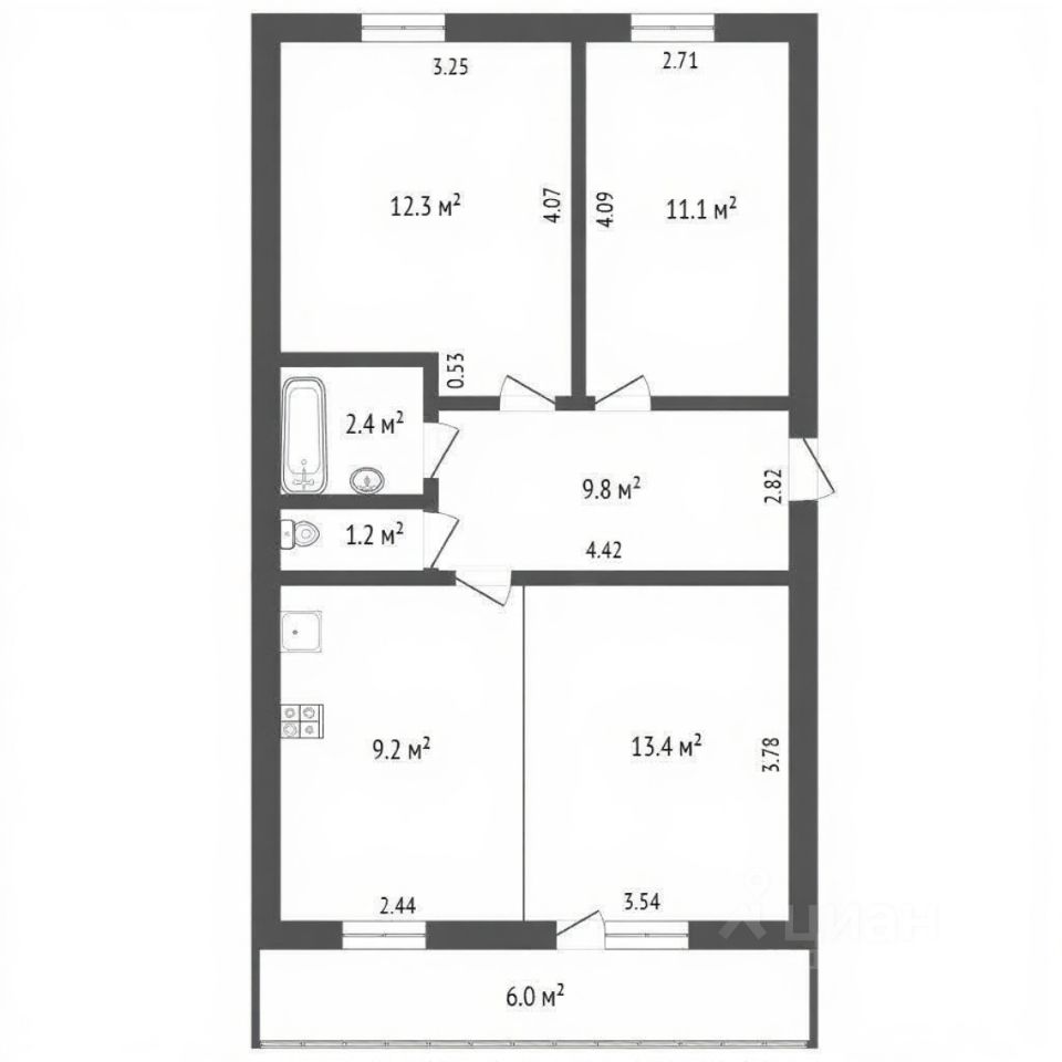 Квартира имеет рациональную и комфортную планировку с изолированными ми: две полноценные спальни и объединенное пространство кухни-гостиной. Из гостиной есть выход на просторную лоджию, которая может служить местом для отдыха или дополнительного функционального пространства.