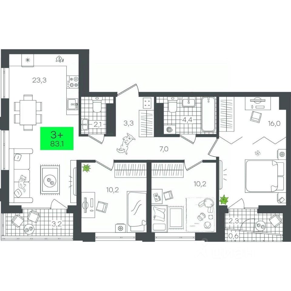 Продаётся 3-комнатная квартира в строящемся доме (1-Д3.1 (Глебова, 10)), срок сдачи: III-кв. 2026, общей площадью 83.1 кв.м., на 10 этаже. Компания 4D приступила к строительству нового жилого комплекса ''Гранд квартал''. Новый ЖК находится в зеленой зоне Калининского района, южнее микрорайона Тюменская слобода.