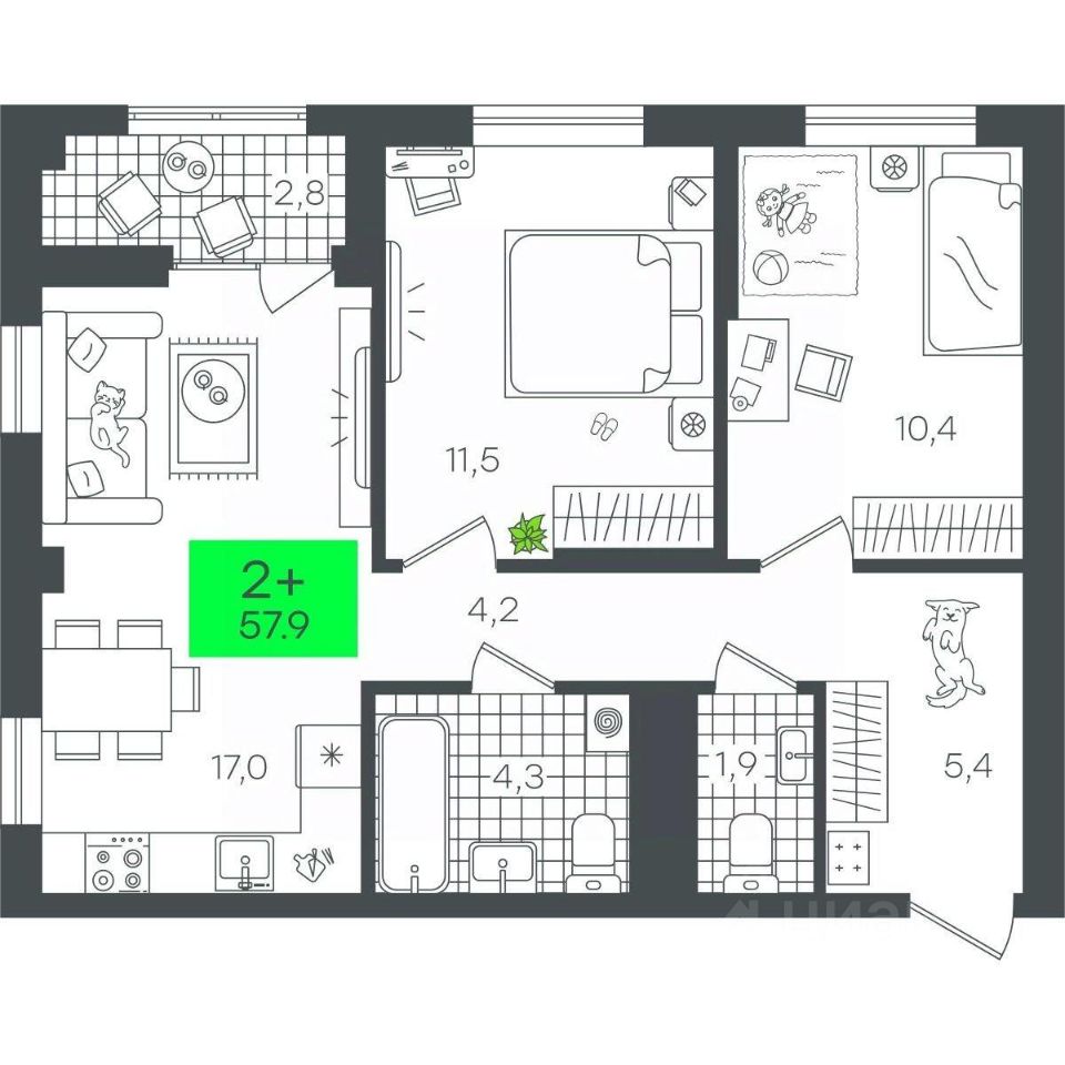 Продаётся 2-комнатная квартира в строящемся доме (Д4.1 (Малкова, 3)), срок сдачи: III-кв. 2026, общей площадью 57.91 кв.м., на 18 этаже. Компания 4D приступила к строительству нового жилого комплекса ''Гранд квартал''. Новый ЖК находится в зеленой зоне Калининского района, южнее микрорайона Тюменская слобода.