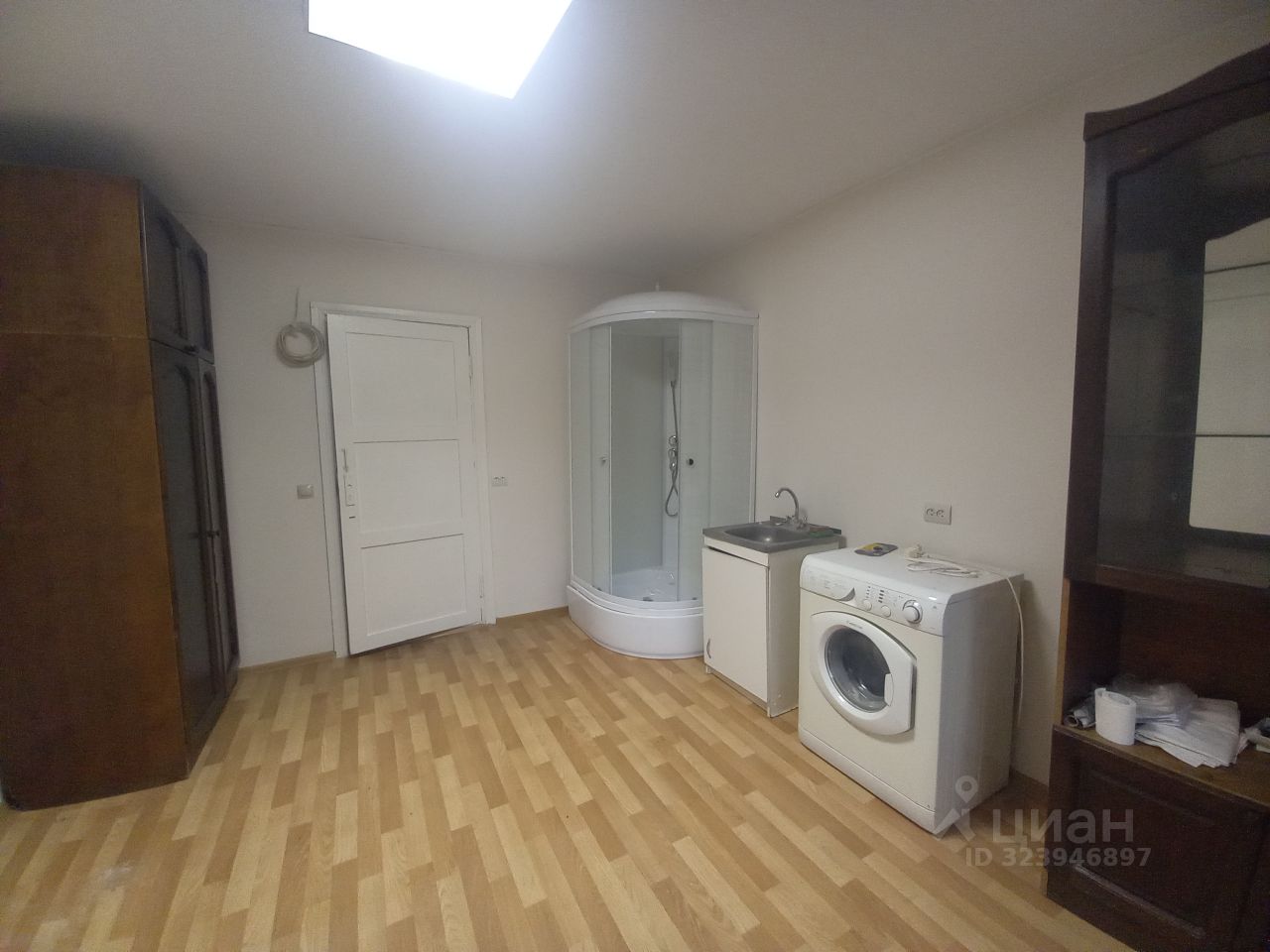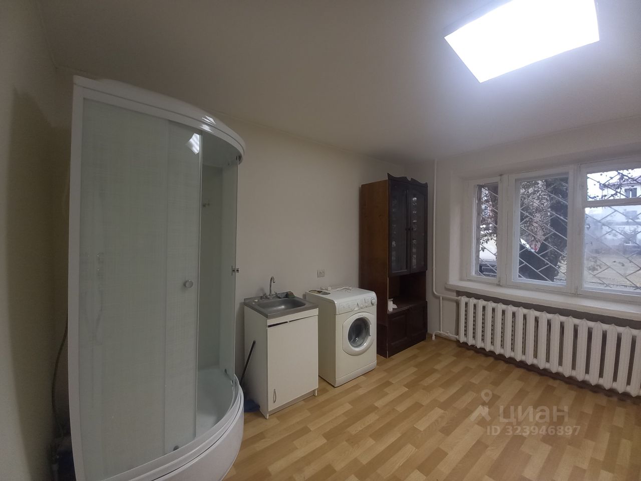 В комнате установлена душевая кабина, заведена вода и слив. Установлена раковина с тумбой. Останется шкаф для одежды. Продажа возможна за наличные или маткапитал.