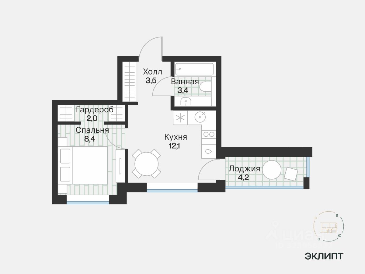 Планировка-трансформер: сделайте в спальне гардеробную или оставьте всё как есть. В кухне просторно — она с выходом на угловую лоджию.