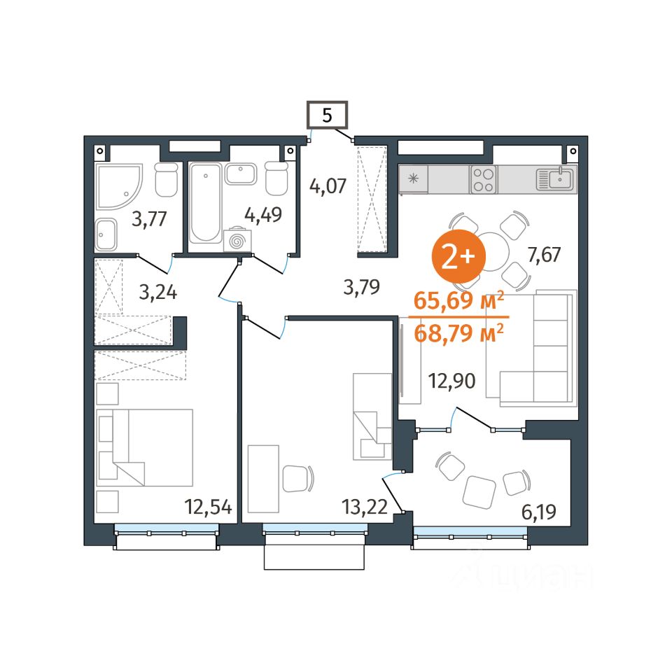 Общая площадь65,69 м2