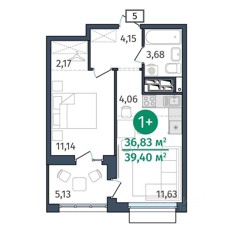 Общая площадь36,83 м2