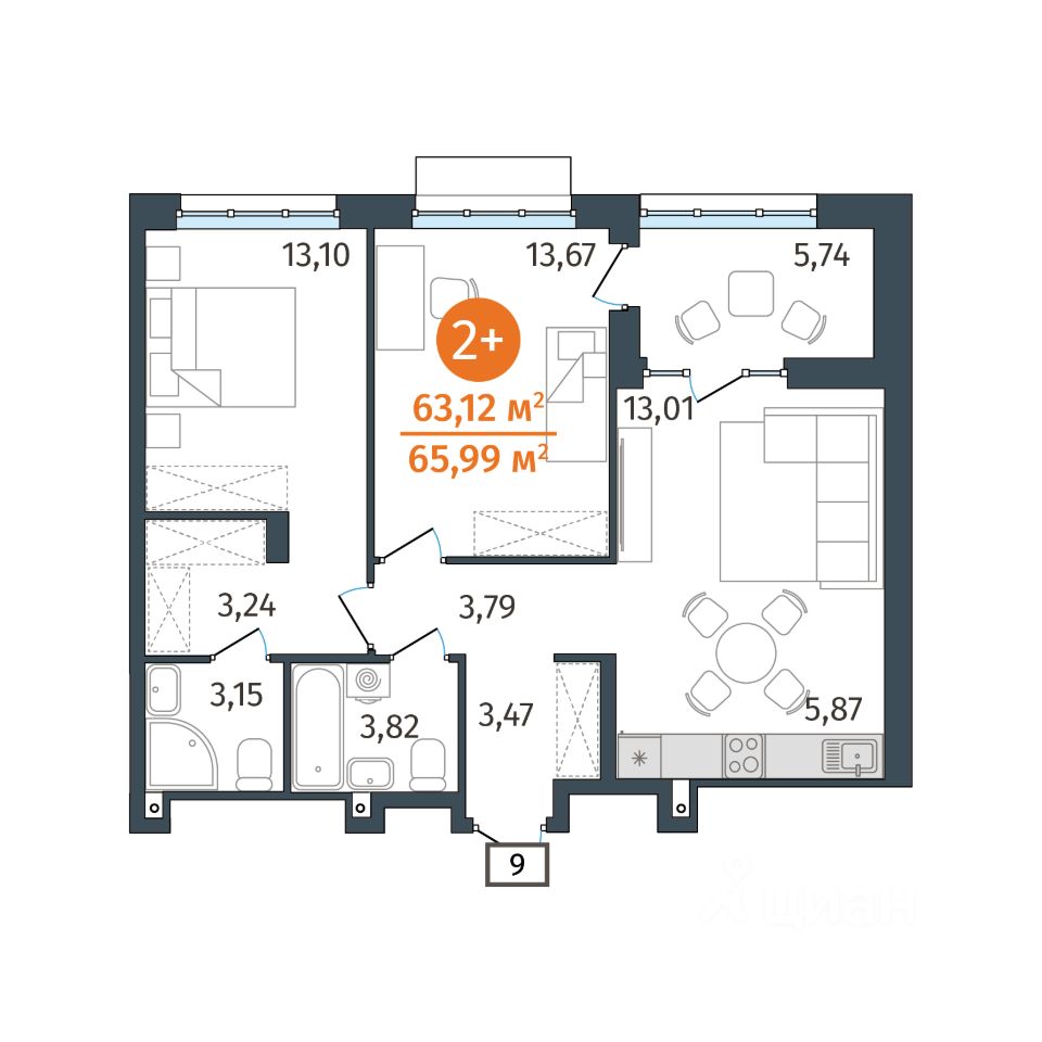 Общая площадь63,12 м2