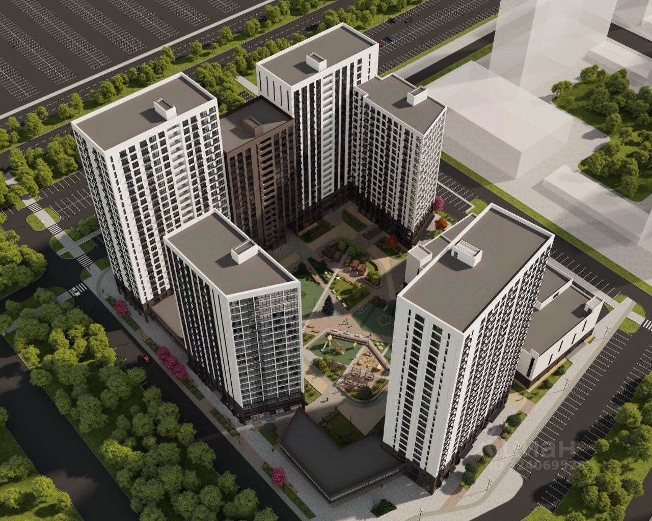 ''Зеленый каркас'' Жилой район спроектирован по принципу квартальной застройки. Между собой кварталы соединяет ''зеленый каркас'' - пешеходная аллея, пронизывающей всю территорию ЖК. Мы планируем засадить ее взрослыми деревьями, разбить газоны и цветники.