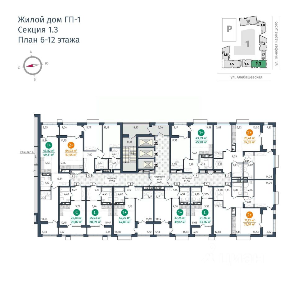 Общая площадь71,13 м2