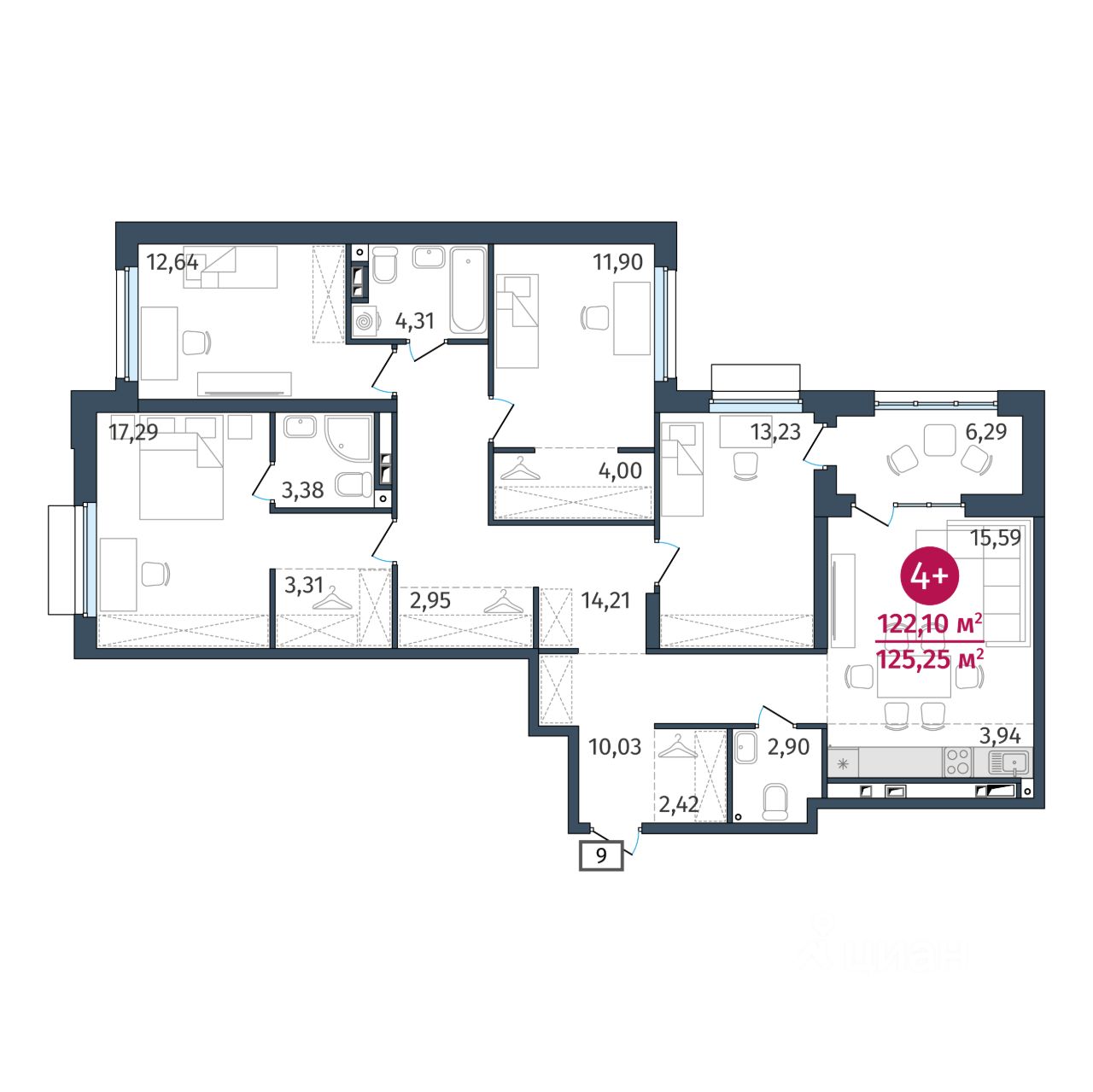 Общая площадь122,1 м2