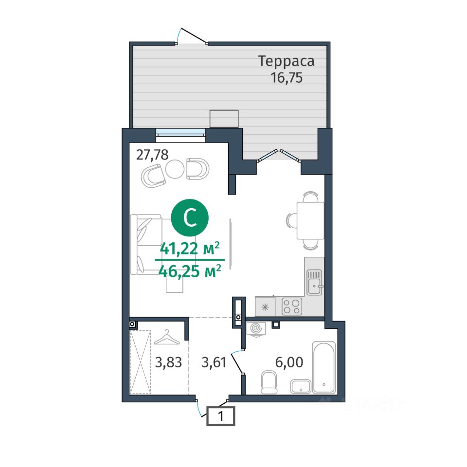 продам 1-к, Сергея Джанбровского, 27 корп. 25 685 000 ₽