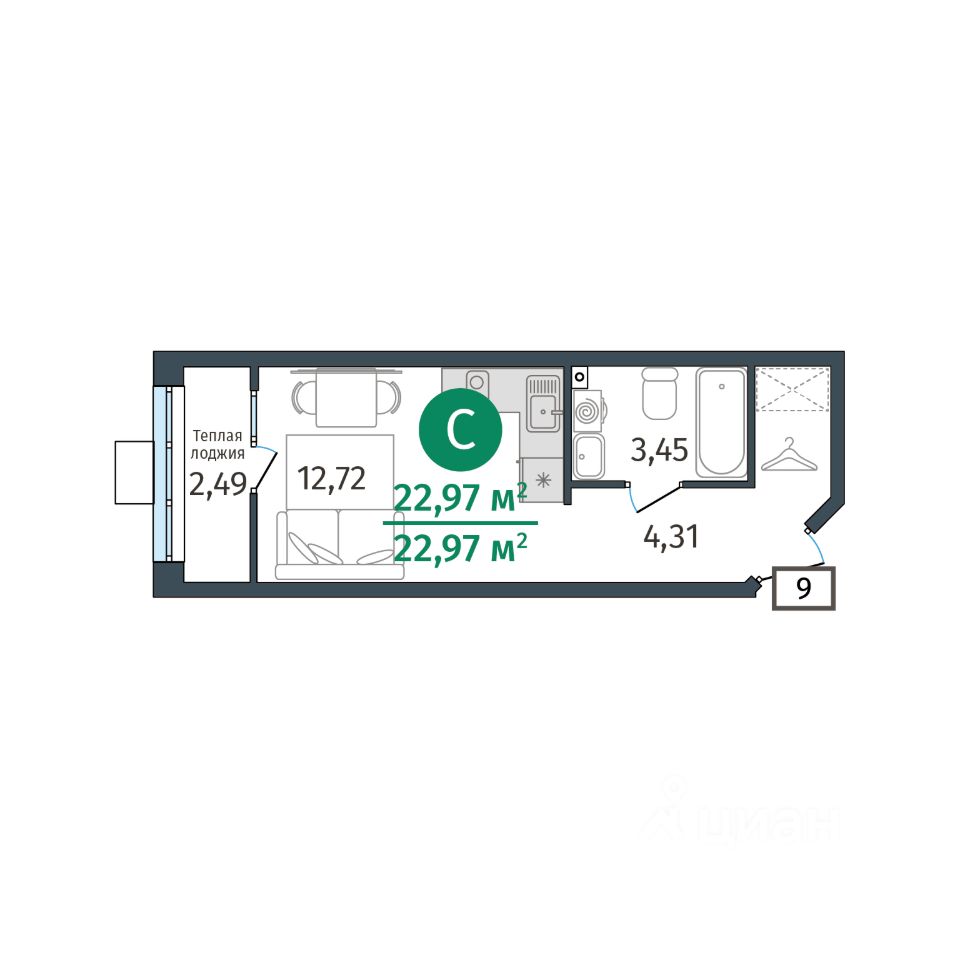 продам 1-к, Тюменская, гп 2.43 513 000 ₽