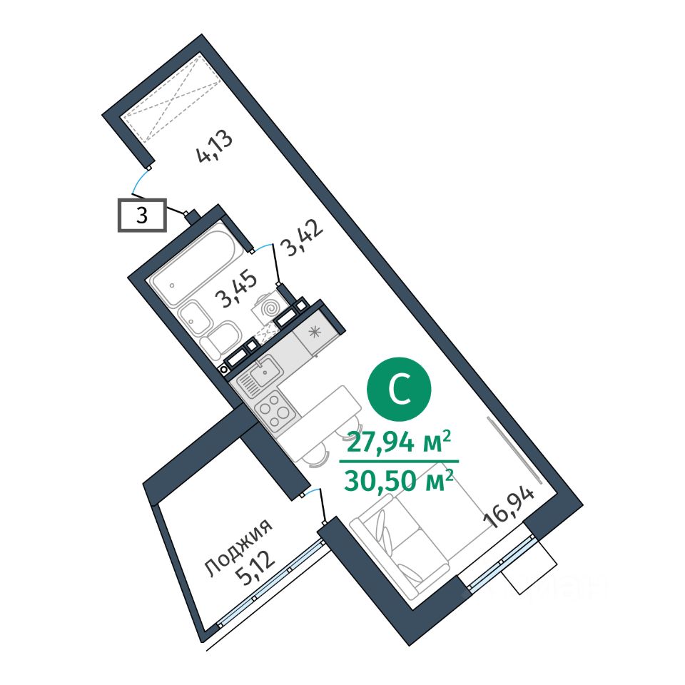 продам 1-к, Тюменская, гп 2.34 249 000 ₽