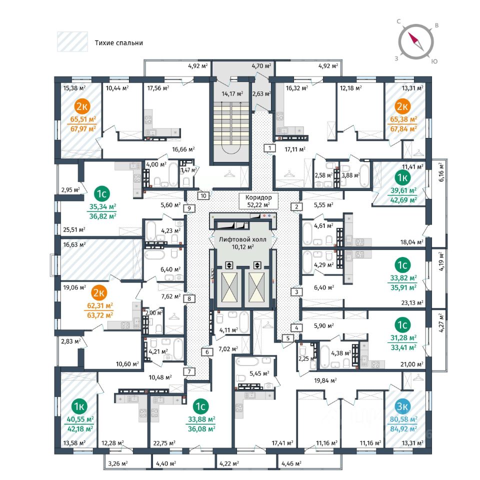 Другая фишка проекта — спальни со звукоизоляцией. Наши проектировщики разработали ряд технологических решений, призванных поглощать как ударный, так и воздушный шум.