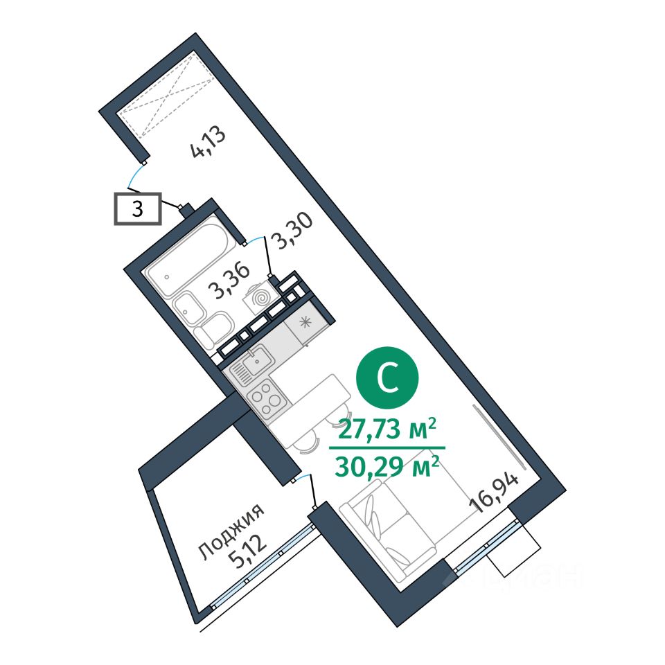 продам 1-к, Тюменская, гп 2.34 143 000 ₽