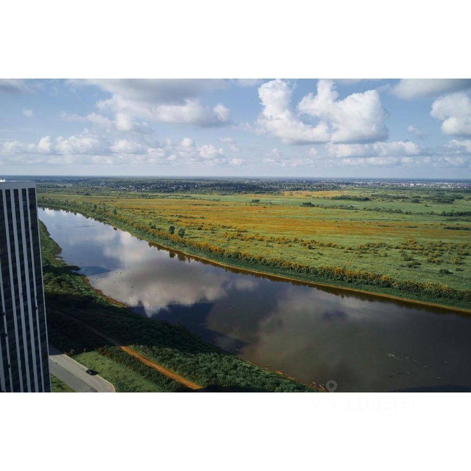 Жилой комплекс на берегу Туры с живописным видом на реку, Мост влюбленных и исторический центр.