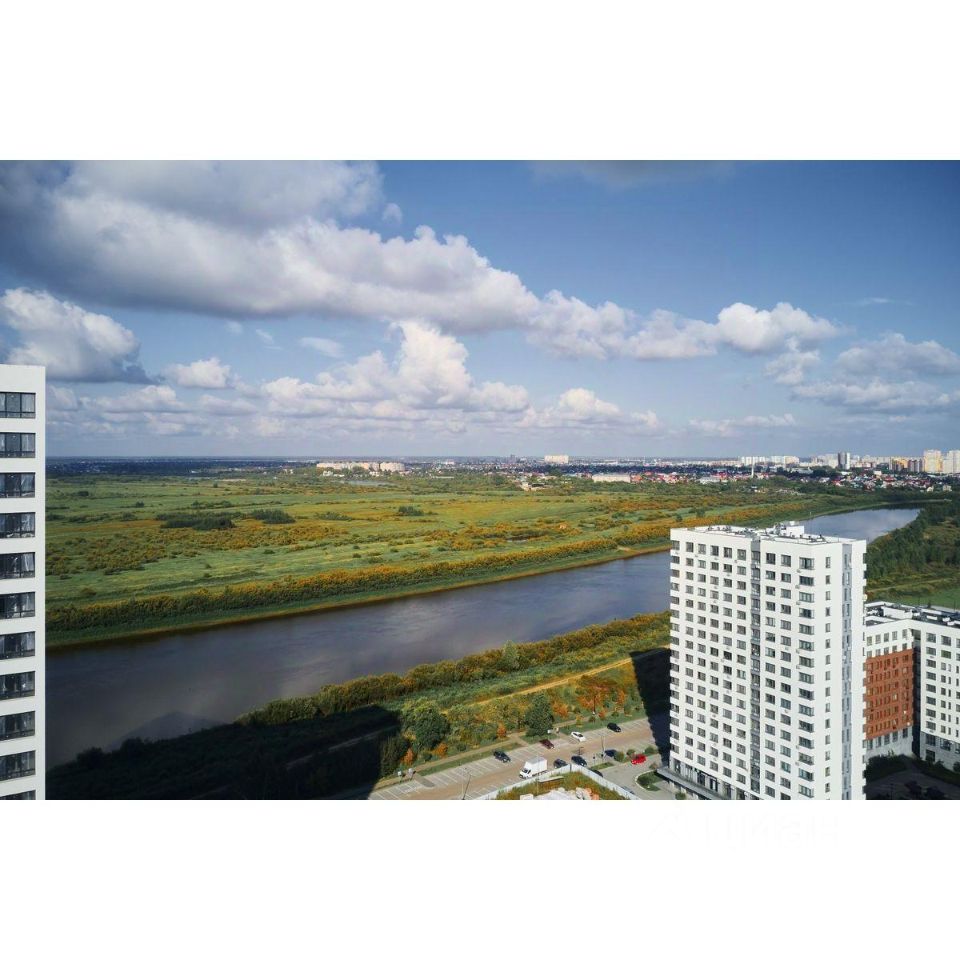 Жилой комплекс на берегу Туры с живописным видом на реку, Мост влюбленных и исторический центр.