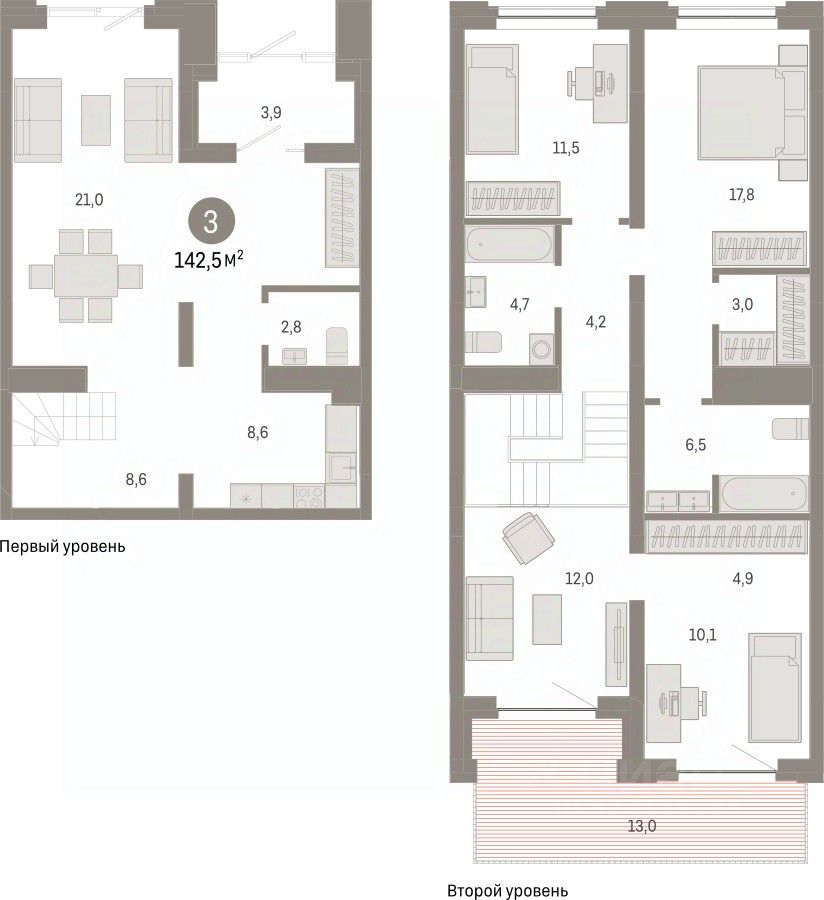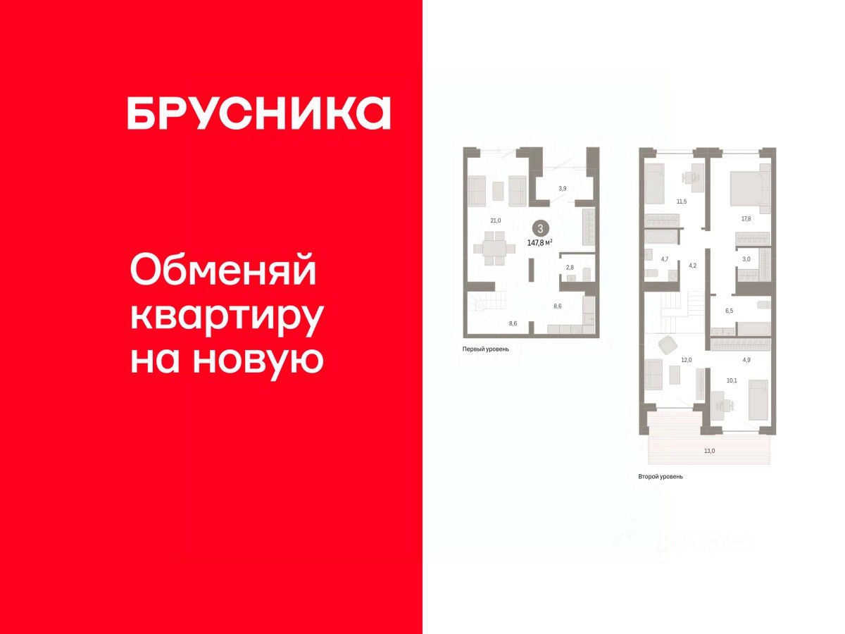 Продаётся с паркингом и кладовой. Двухуровневая квартира с кухней-гостиной и тремя спальнями в жилом районе ''Речной порт''. Особенности планировки: двухуровневая, отдельный вход, свободная планировка, терраса на крыше. квартиры в нашей базе: РПТ04-Ж7.1.1.