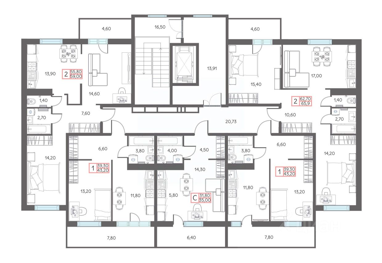 Продаётся 1-комнатная квартира в строящемся доме (ГП-1 (Дом 29)), срок сдачи: I-кв. 2027, общей площадью 43.2 кв.м., на 7 этаже. Рассвет в Тобольске - это жилой комплекс из 4 домов, расположенный в границах улиц Нефтехимиков и Александра Абдулова, созданный для семейного проживания.
