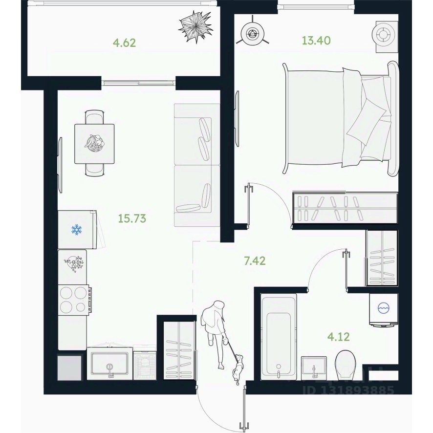 Общая площадь42,98 м2