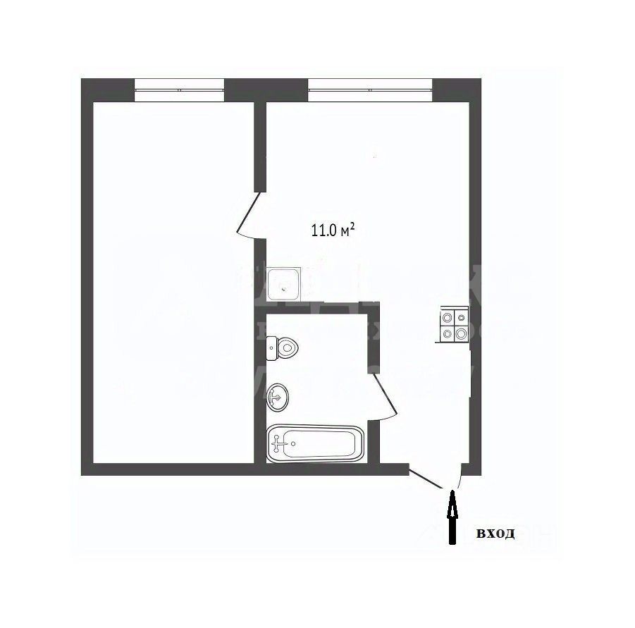 Санузел совмещённый, установлена ванна.