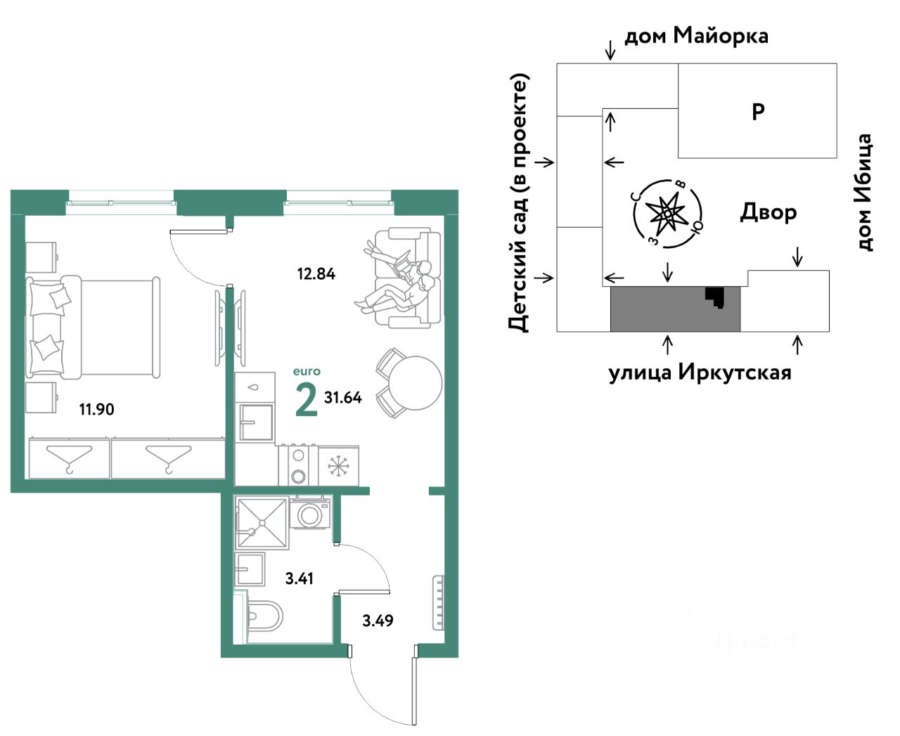 Продаётся 2-комнатная квартира в строящемся доме (Дом Тенерифе (ГП-2Я)), срок сдачи: IV-кв. 2027, общей площадью 31.64 кв.м., на 13 этаже. Новый жилой комплекс ''Остров-сад'' от Специализированного застройщика ''Страна. Коммунистическая'' расположен по адресу: г. Тюмень, по ул. Ярославская.