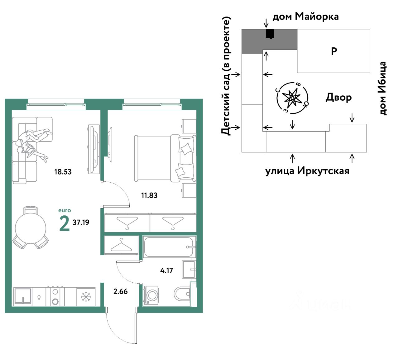 Продаётся 2-комнатная квартира в строящемся доме (Дом Тенерифе (ГП-2Я)), срок сдачи: IV-кв. 2027, общей площадью 37.19 кв.м., на 2 этаже. Новый жилой комплекс ''Остров-сад'' от Специализированного застройщика ''Страна. Коммунистическая'' расположен по адресу: г. Тюмень, по ул. Ярославская.