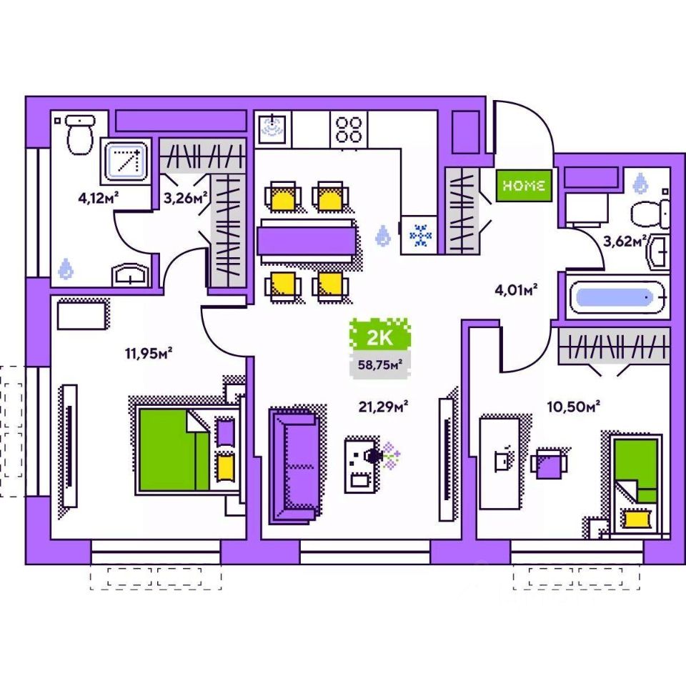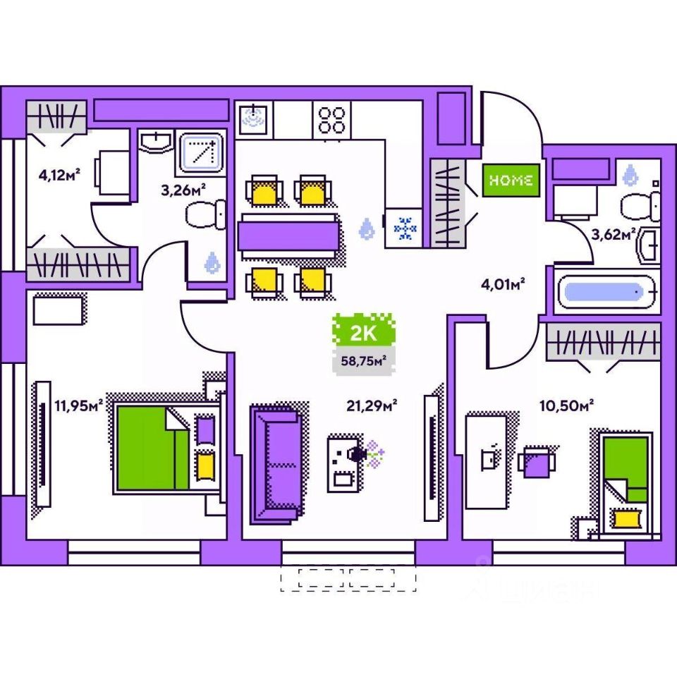 - Общая площадь58 м²