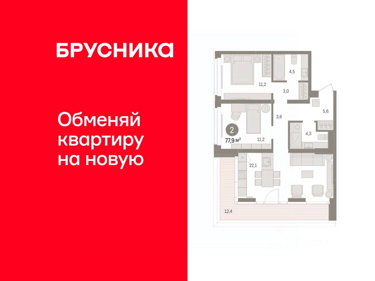 Продаётся с паркингом. Квартира с кухней-гостиной и двумя спальнями в кварталах ''На Минской''. Особенности планировки: предчистовая отделка. квартиры в нашей базе: МНС01-Ж1.13.4.