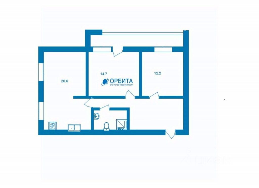 В квартире есть две отдельные комнаты: 12 и 14 квадратных метров. Также имеется просторная кухня-гостиная площадью 20,6 квадратных метра и коридор площадью 10 квадратных метров.