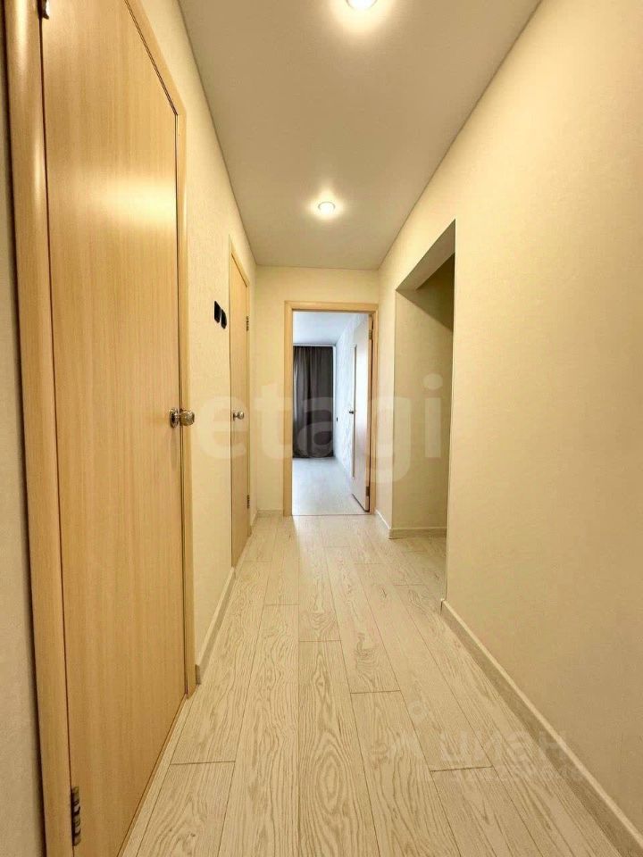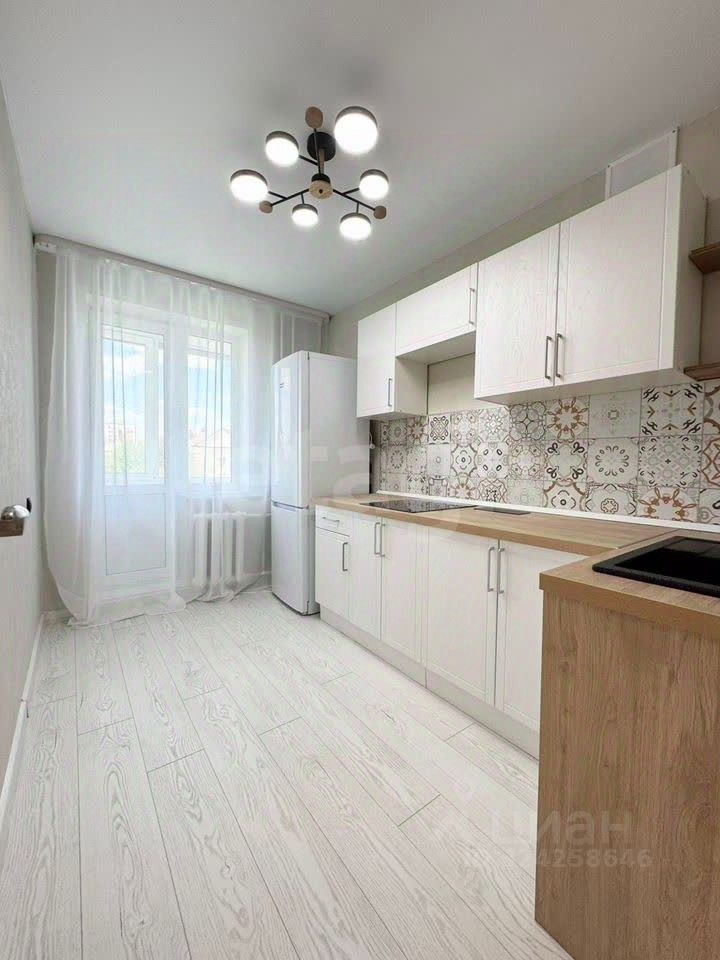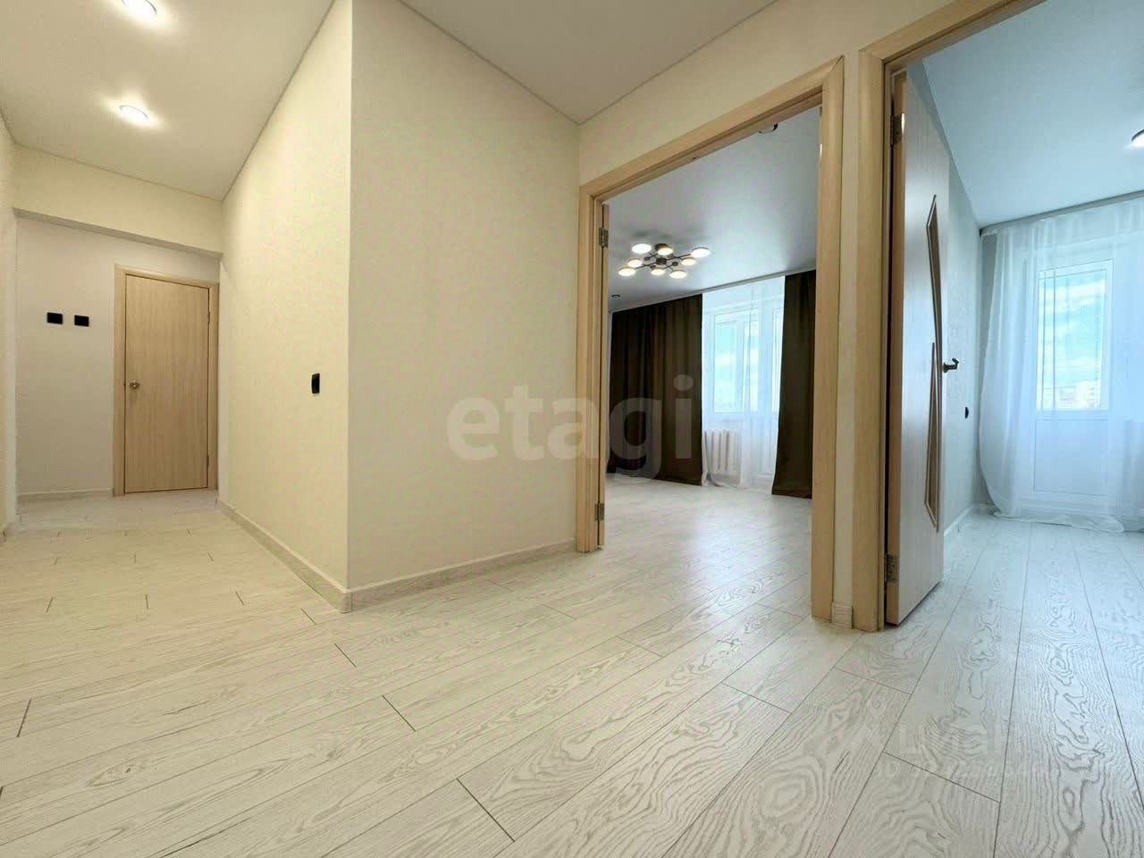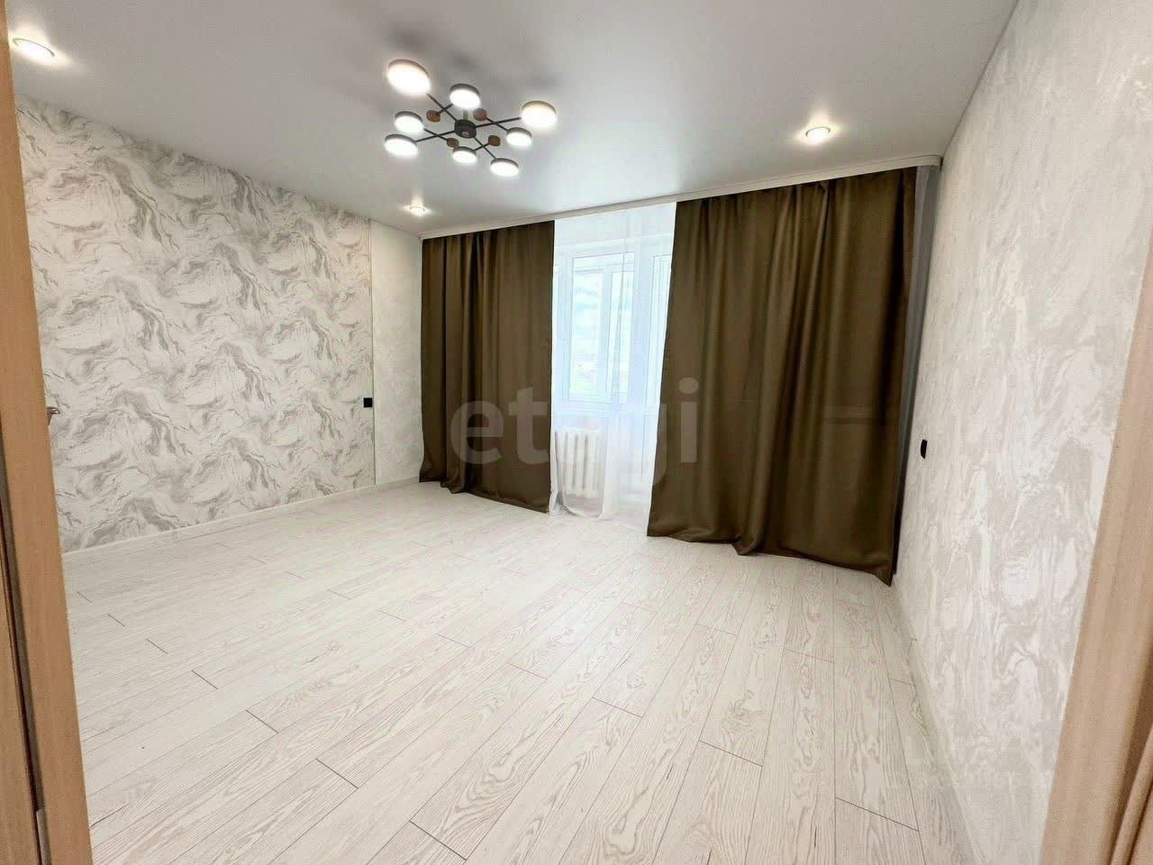 В квартире выполнен новый качественный ремонт. Везде установлены новые пластиковые окна, межкомнатные двери. На полу ламинат 32 класса. Обои на стенах современные в светлых тонах. Натяжные матовые потолки с красивыми люстрами. В санузлах современная плитка под бетон, новая сантехника.
