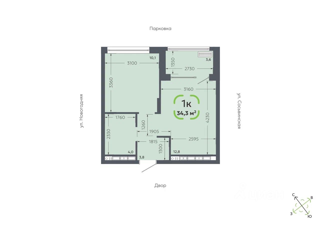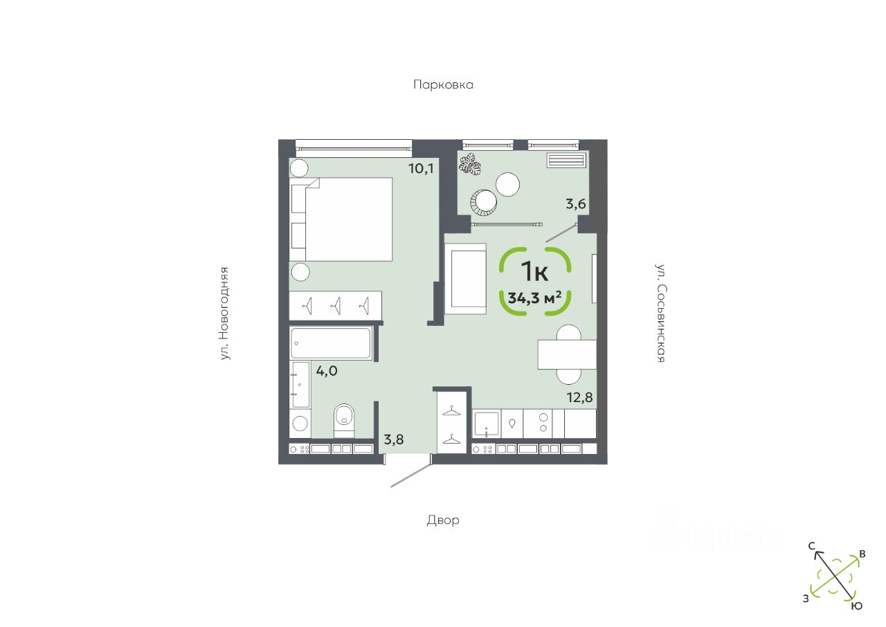 Общая площадь34,3 м2
