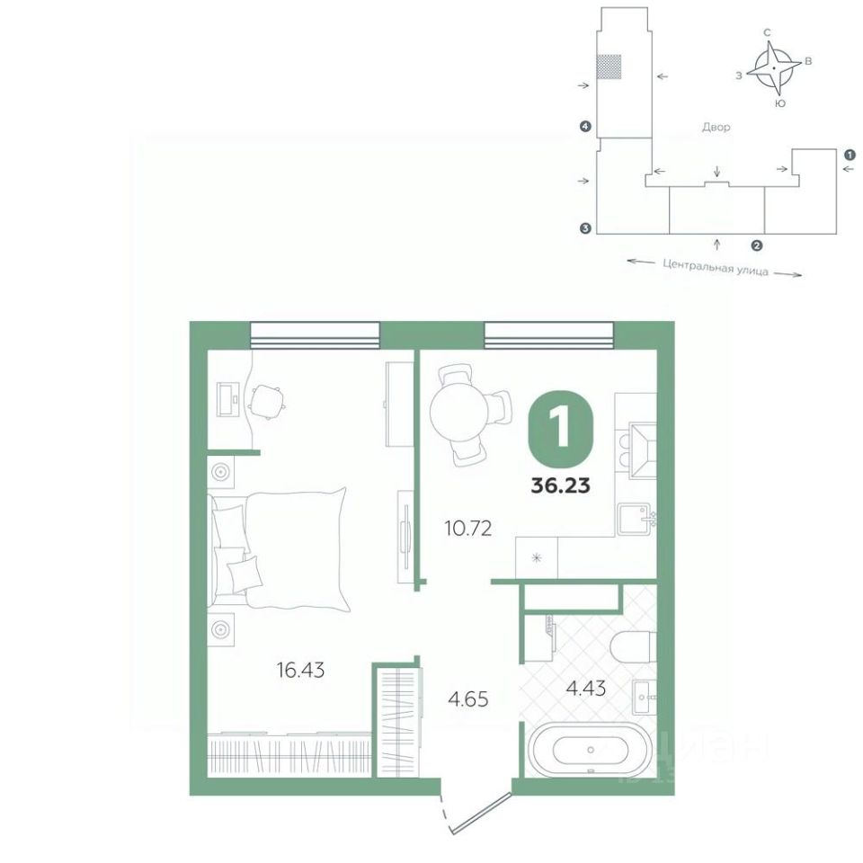 продам 1-к, Центральная, 253 991 200 ₽