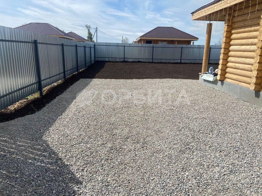 мягкая отмостка, парковка, дорожки из гравия.