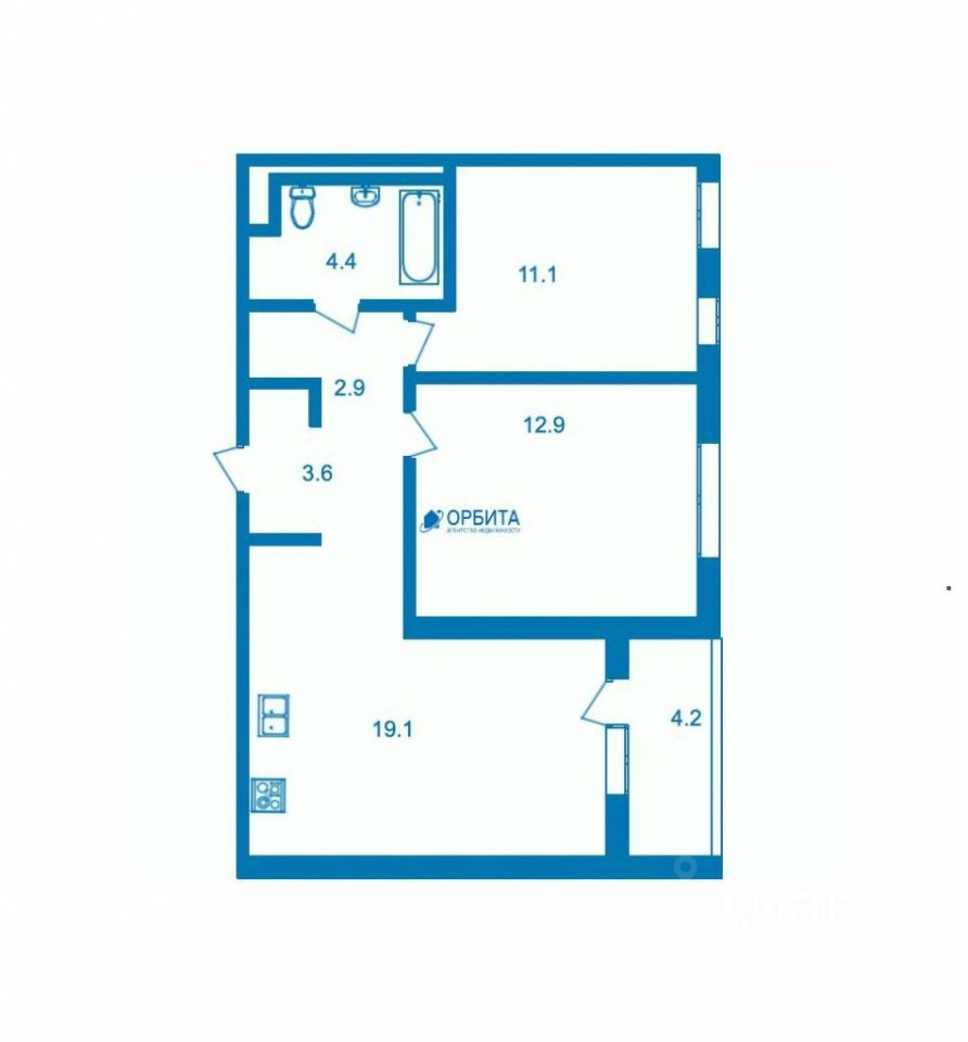 Квартира 53.7 м² - заезжай и живи!
