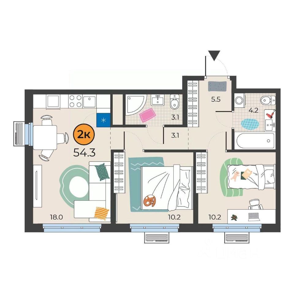 продам 2-к, Федюнинского, 39 914 344 ₽