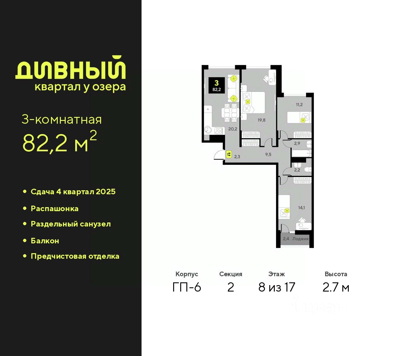 Общая площадь82,2 м2