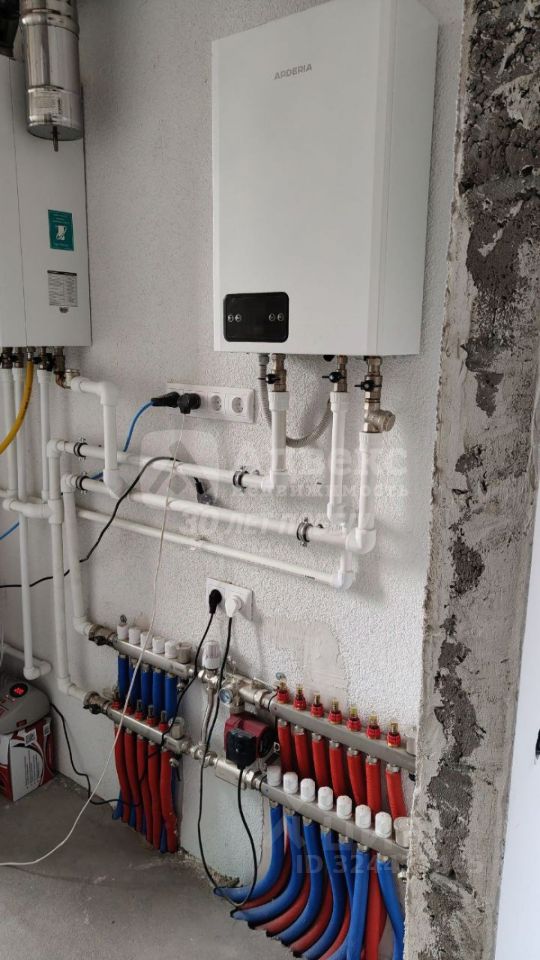 Коммуникации/отделка. Теплый пол везде + радиаторы что позволяет настроить комфортную температуру (по полу утепление эппс 50мм + ЦПС). Электрическая разводка, выводы под интернет, тв. Выводы канализации и точки разбора воды с фильтром грубой очистки. Система вытяжной вентиляции. Окна ПВХ Rehau Grazio 70мм + откосы с подоконниками. Дверь стальная с терморазрывом. Отделка стен: гипсовая, во влажных помещениях — цементная. Установлены водонагреватель, электрический и газовый котёл.