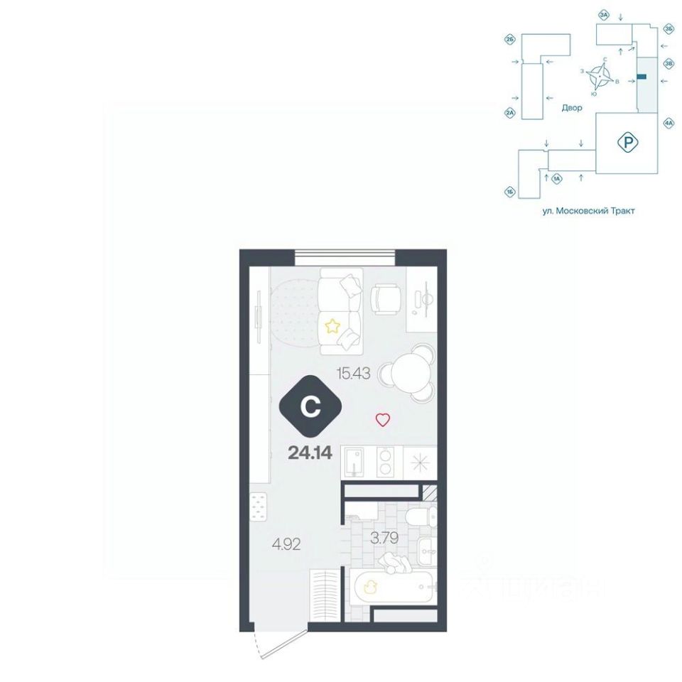 продам 1-к, Московский тракт, 17143 297 600 ₽