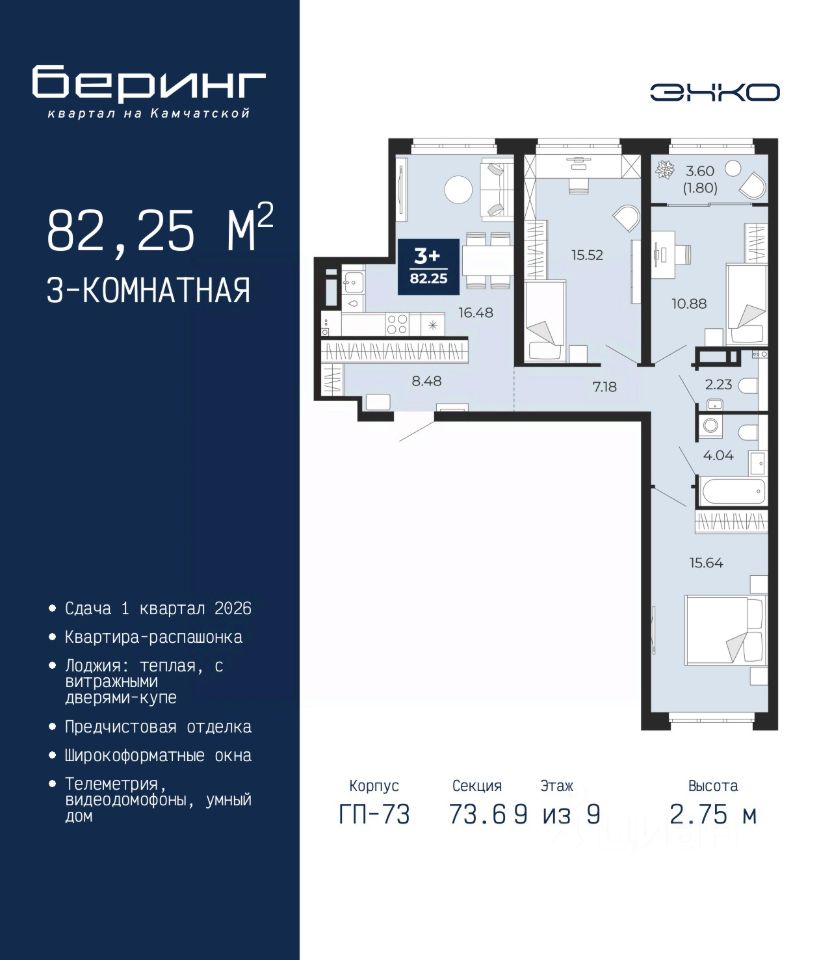 продам 3-к, Камчатская, 107 корп. 19 830 750 ₽