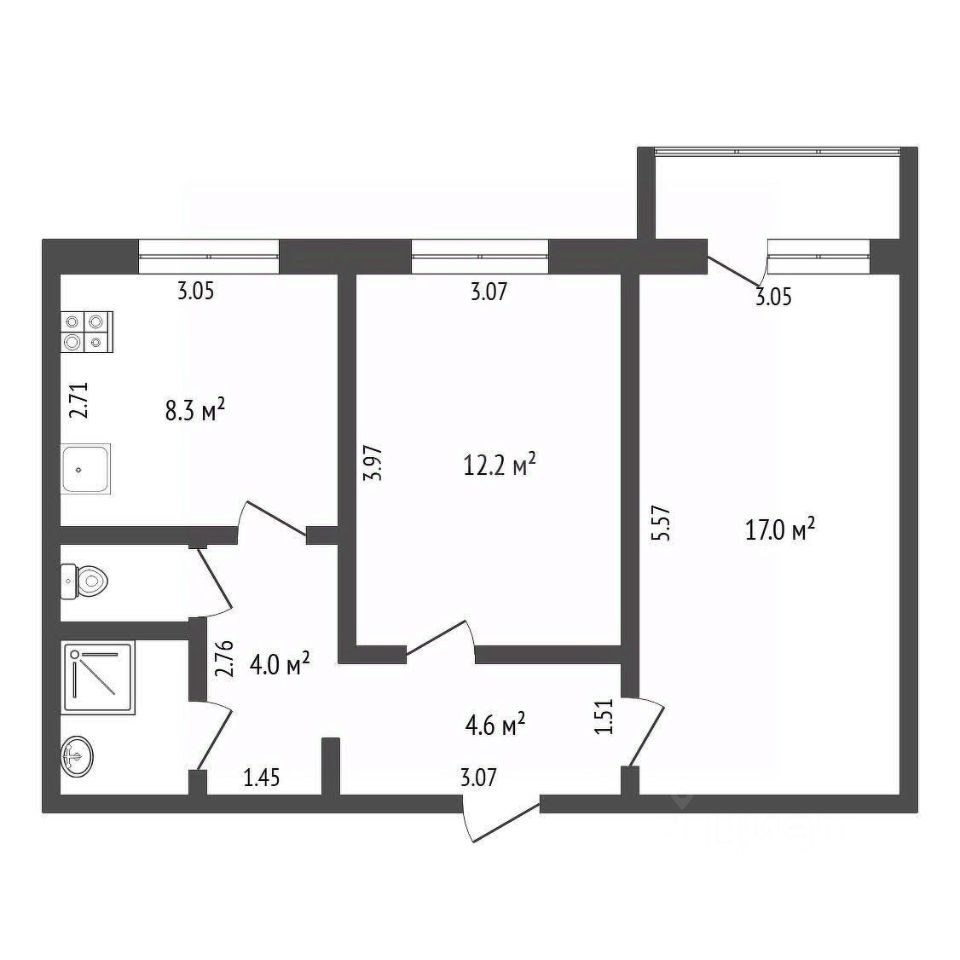 Две изолированные комнаты, одна разделена нишей — удобно выделить спальню и рабочее место