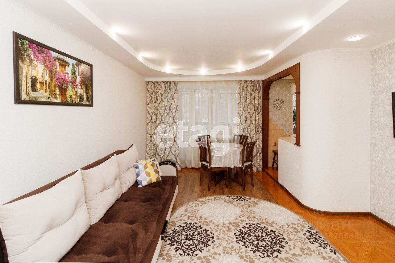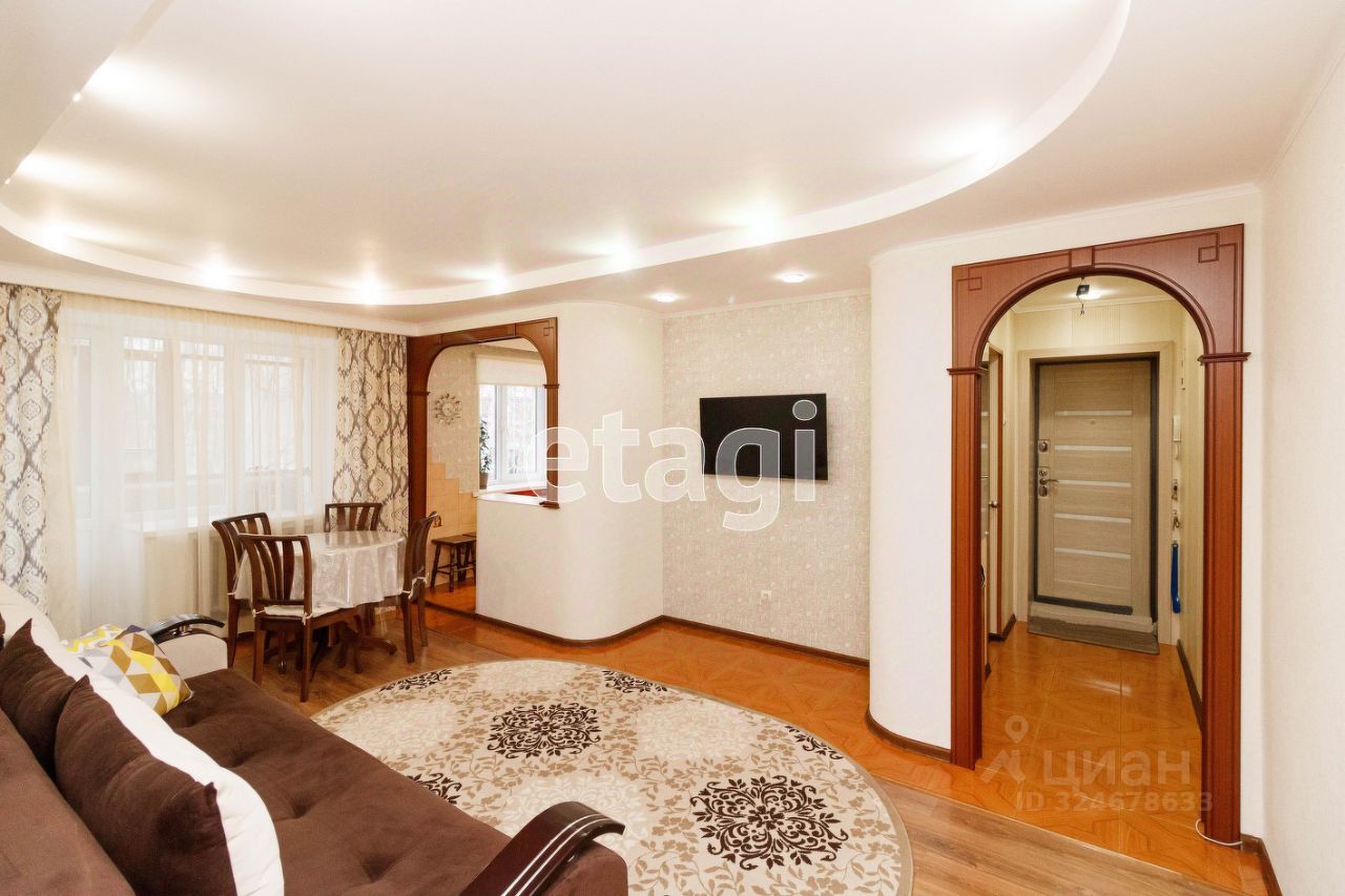 Стены - новые качественные обои. Пол - ламинат, санузел, кухня, прихожая - плитка. Межкомнатные двери - массив дерева. Окна пластиковые, балкон застеклён. При продаже в квартире остается: кухонный гарнитур, прихожая, шкаф.